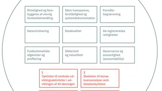 Værktøjskassen understøtter også overholdelse af øvrige retlige krav, herunder bl.a. i forvaltningsloven og særlovgivningen, ligesom den giver gode råd til håndtering af immaterialretlige krav ved forhandling med leverandører af AI-løsninger.