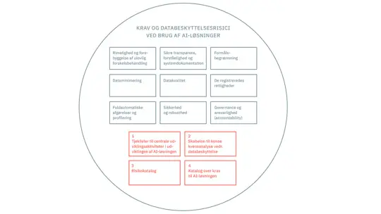 Værktøjskassens primære formål er at understøtte kommuners overholdelse og håndtering af de væsentligste databeskyttelsesretlige krav og risici ved udvikling og anvendelse af AI-løsninger, dvs. i hele løsningens livscyklus. Det gælder f.eks. sikring af ligebehandling og transparens samt dataminimering.