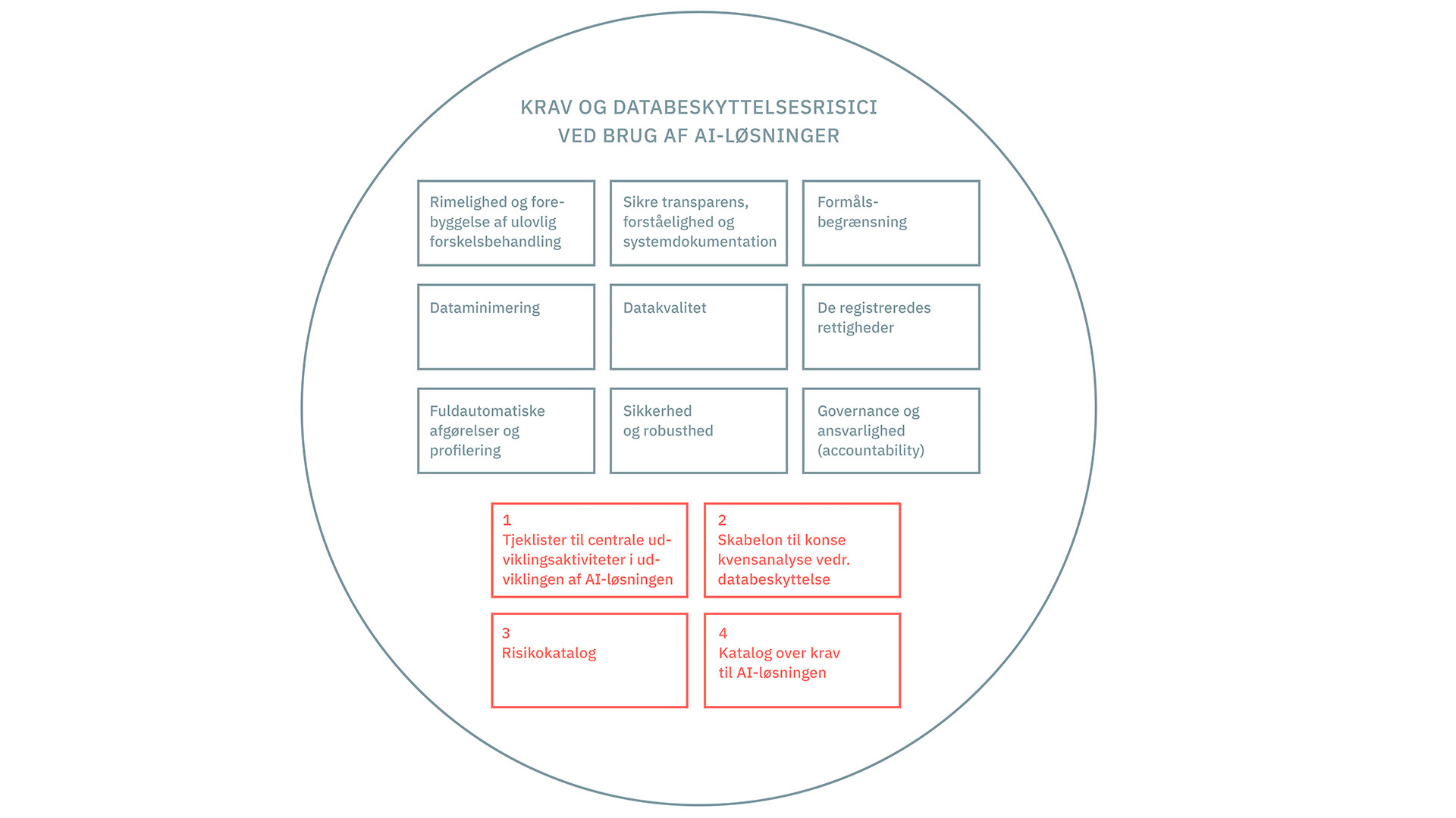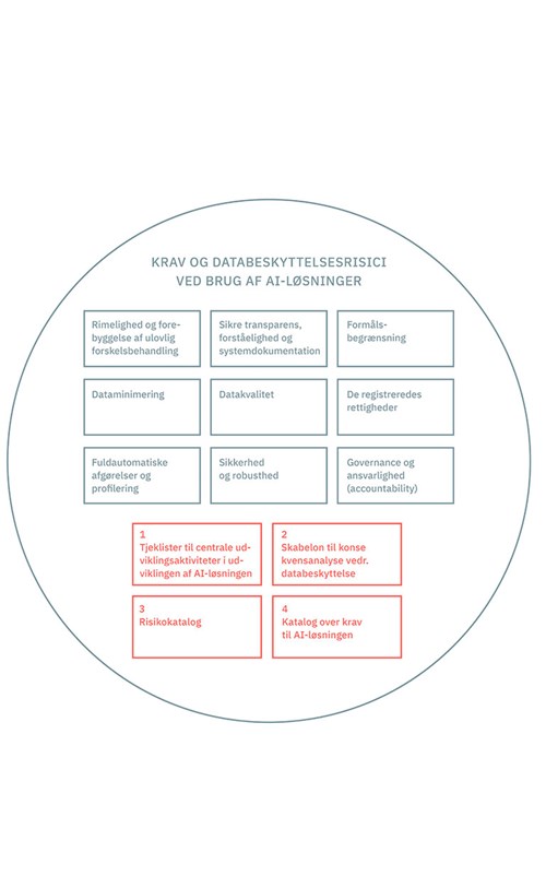 Værktøjskassens primære formål er at understøtte kommuners overholdelse og håndtering af de væsentligste databeskyttelsesretlige krav og risici ved udvikling og anvendelse af AI-løsninger, dvs. i hele løsningens livscyklus. Det gælder f.eks. sikring af ligebehandling og transparens samt dataminimering.